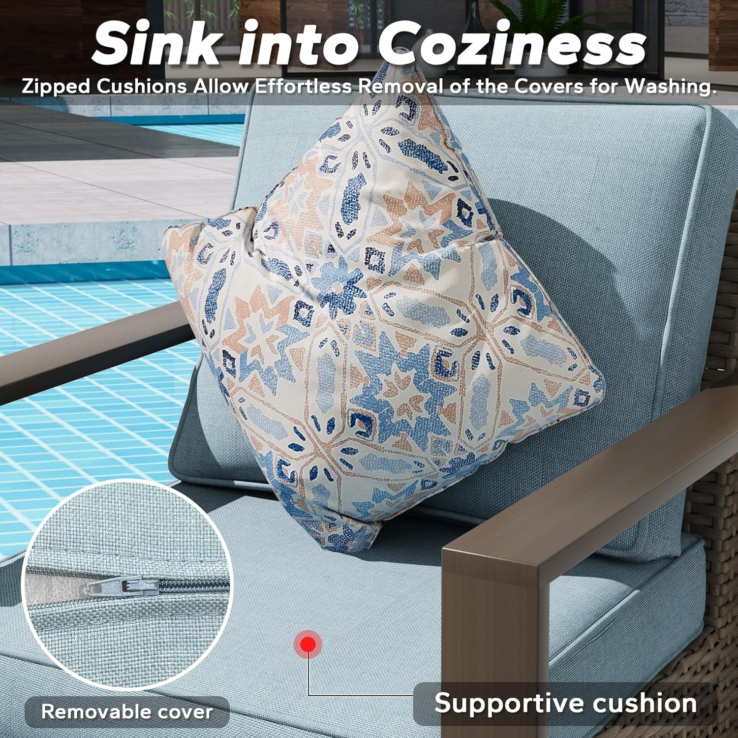 - DEEP SEATING & SPACIOUS ROOM: The swivel patio chair set features an extended seat panel, providing a snug feel while seated. There is ample space for an adult to sit and move around naturally.