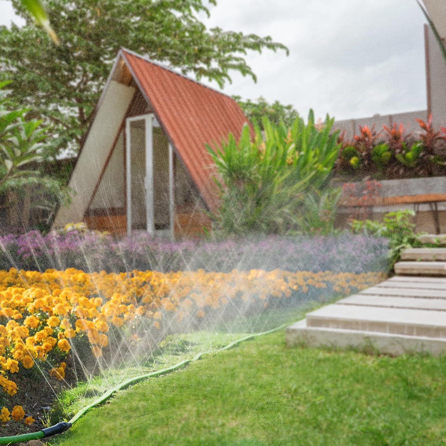 - EFFICIENT AND WATER-SAVING: With its unique 3-tube design, the KOBAZ Sprinkler Hose achieves efficient watering while saving a significant amount of water. Water is sprayed in a mist, covering a range and height of 3-6 feet under normal water pressure (below 60 psi). It provides powerful and uniform irrigation for lawns, gardens, yards, and shrubs
