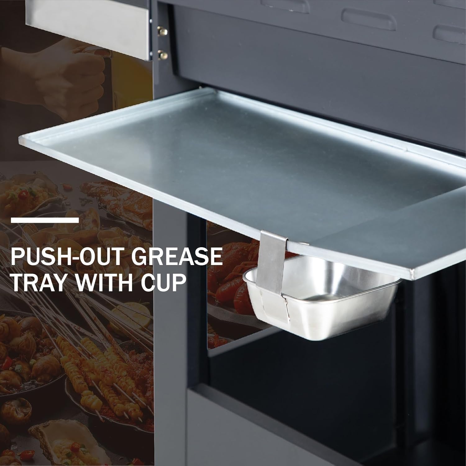 - 𝐄𝐚𝐬𝐲 𝐭𝐨 𝐂𝐥𝐞𝐚𝐧: The full-size grease tray slides out smoothly, making it a breeze to deal with grease and drippings while you're grilling. Plus, the handy cup lets you easily get rid of the collected grease, keeping the post-grill cleanup hassle-free. This design also ensures your food tastes its best by preventing excessive grease from affecting the