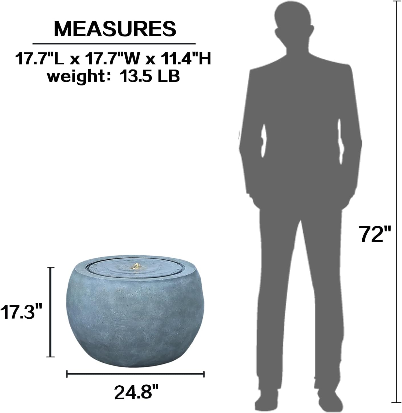 Garden Water Fountain Outdoor Large Round Bubbler Water Feature Indoor with Lights & Pump and Pebbles Concrete Effect for Patio Pool Pond Yard Home Decor Gray, 25 "L X 25" W X 17.5" H