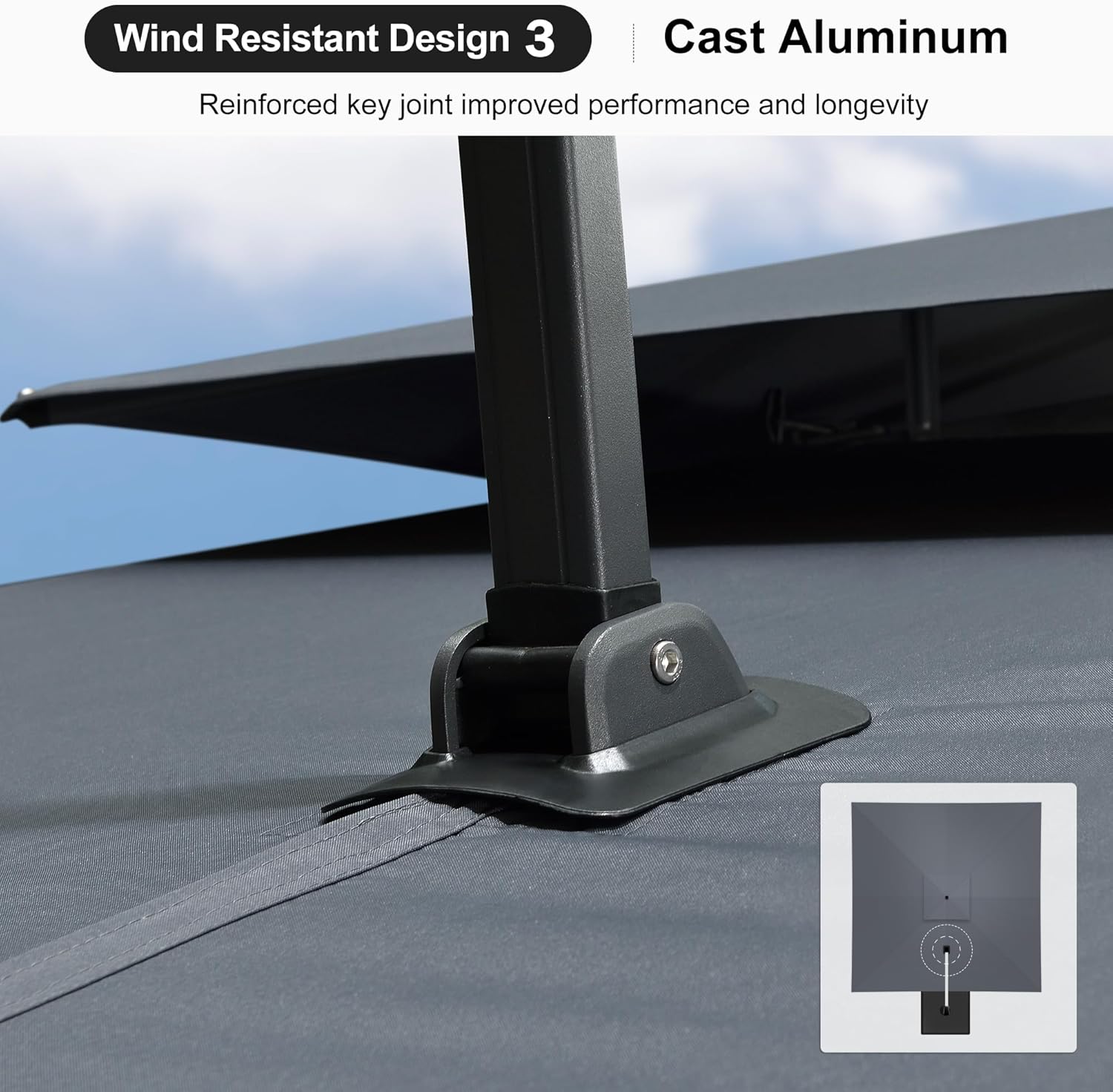 - ROTATION & TILTING: This cantilever umbrella can be rotated 360 degrees easily, in addition, the 6-level adjustable tilt operation system also makes tilting the deck umbrella effortless