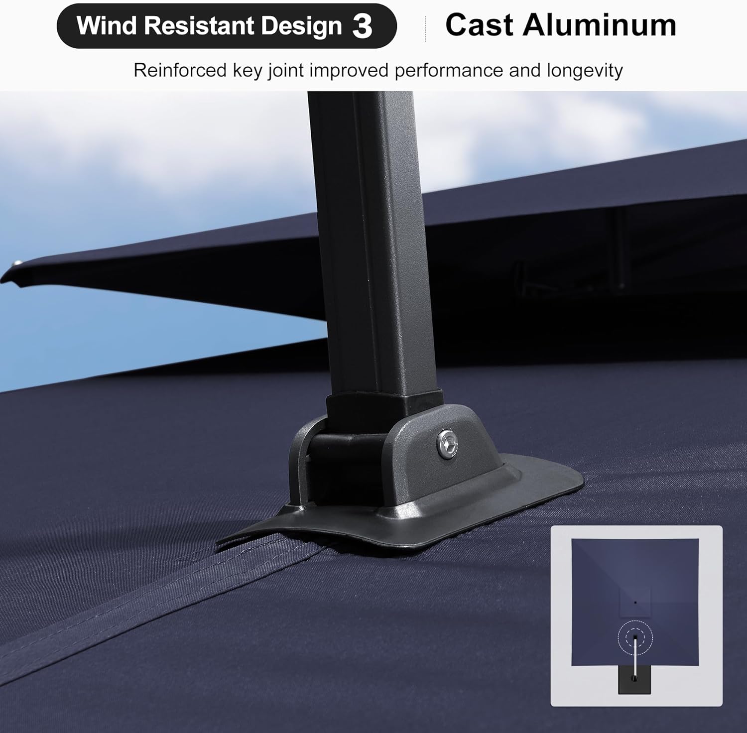 - ROTATION & TILTING: This cantilever umbrella can be rotated 360 degrees easily, in addition, the 6-level adjustable tilt operation system also makes tilting the deck umbrella effortless