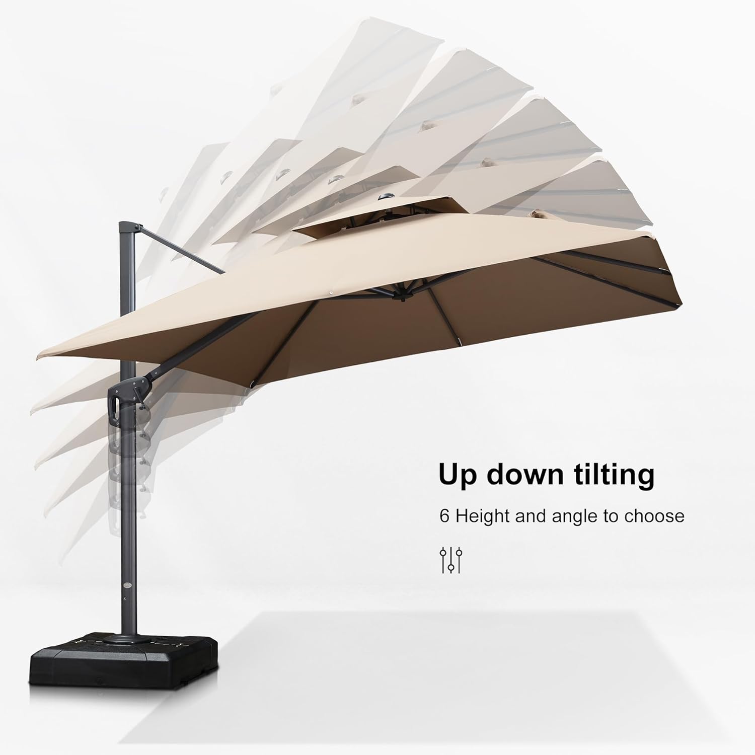 - ROTATION & TILTING: This cantilever umbrella can be rotated 360 degrees easily, in addition, the 6-level adjustable tilt operation system also makes tilting the deck umbrella effortless