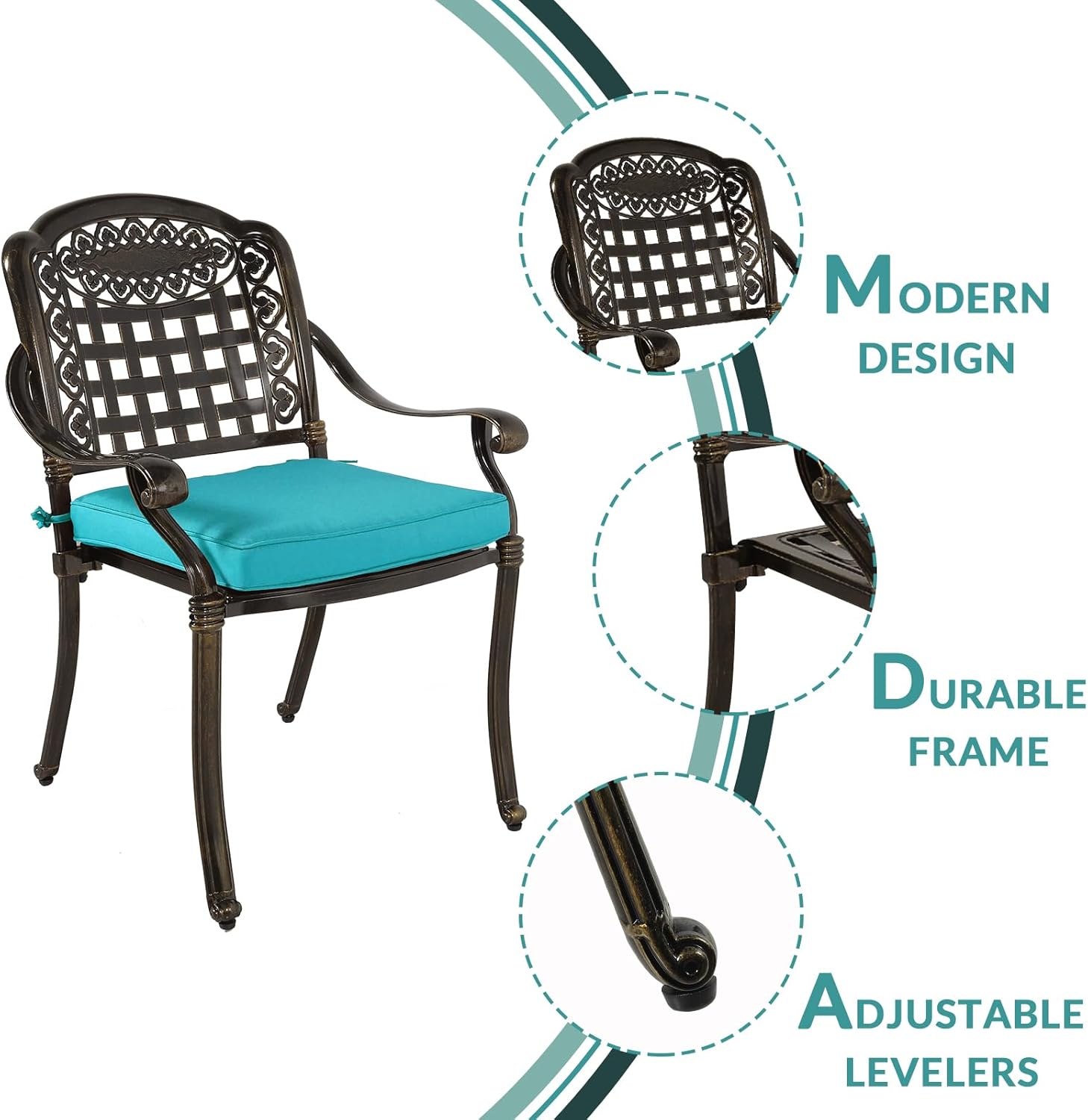 - 【Retro Pattern Design】 - Each chair features a contoured shape with elegant flora and lattice design, add beautiful finishing touch to any outdoor setting, patio or poolside. Designed with a contoured shape and curved armrests for exceptional comfort as you gather with friends and family