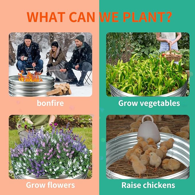 - Durable Construction: The 48 inch diameter round galvanized garden raised bed is made with strong galvanized steel material with crimped edge and corner,no sharpe, ensuring safely using it and long-lasting durability and resistance to rust