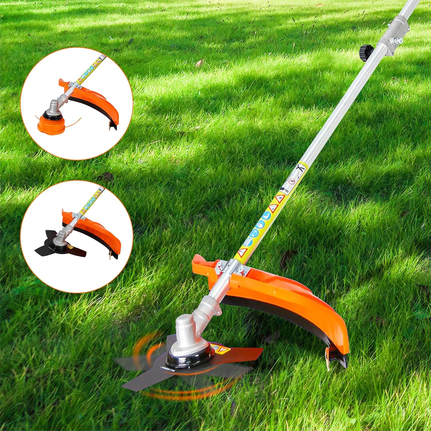 - 【6-IN-1 Compact Cordless Grass Trimmer】 With 5 different tools: a nylon head, a 3T blade, a 40T Blade, a pole saw cutter, a hedge trimmer blade,the Gas Petrol Hedge Trimmer plays a diversified role when tackling the outdoor job. As the Smoother and easier pull starter make the machine start much easier, you are able to start tidying the garden/yard/Lawn/Forest(wherever you go) only in a few seconds. This weed eater and brush cutter allows you to do multiple chores with one machine.