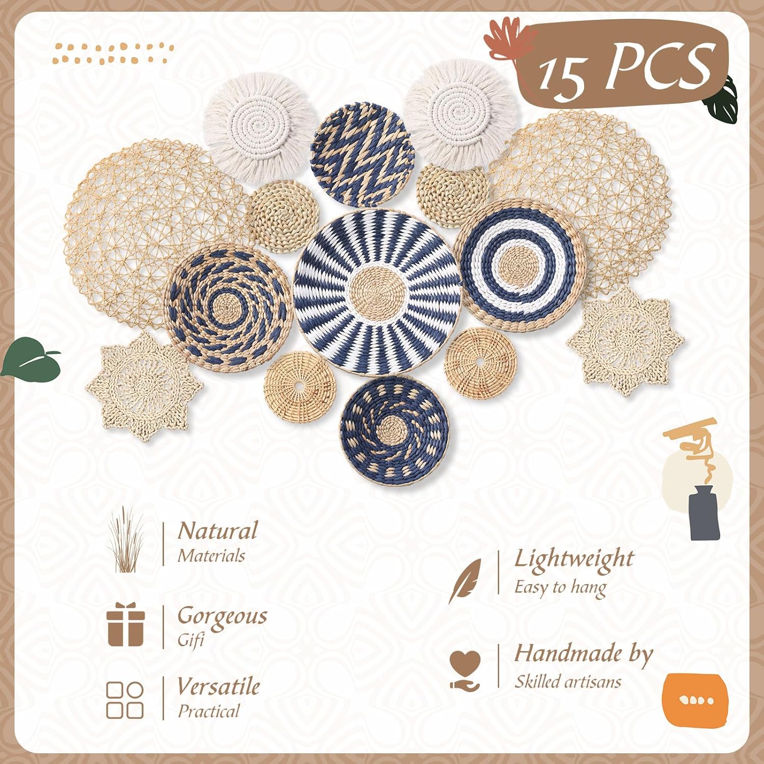 - Inclusive Decorative Package: you will receive 15 pieces of wicker hanging basket, suitable for adding aesthetic charm to the wall; They are enough for you to display in your bedroom, living room, kitchen, yard and more