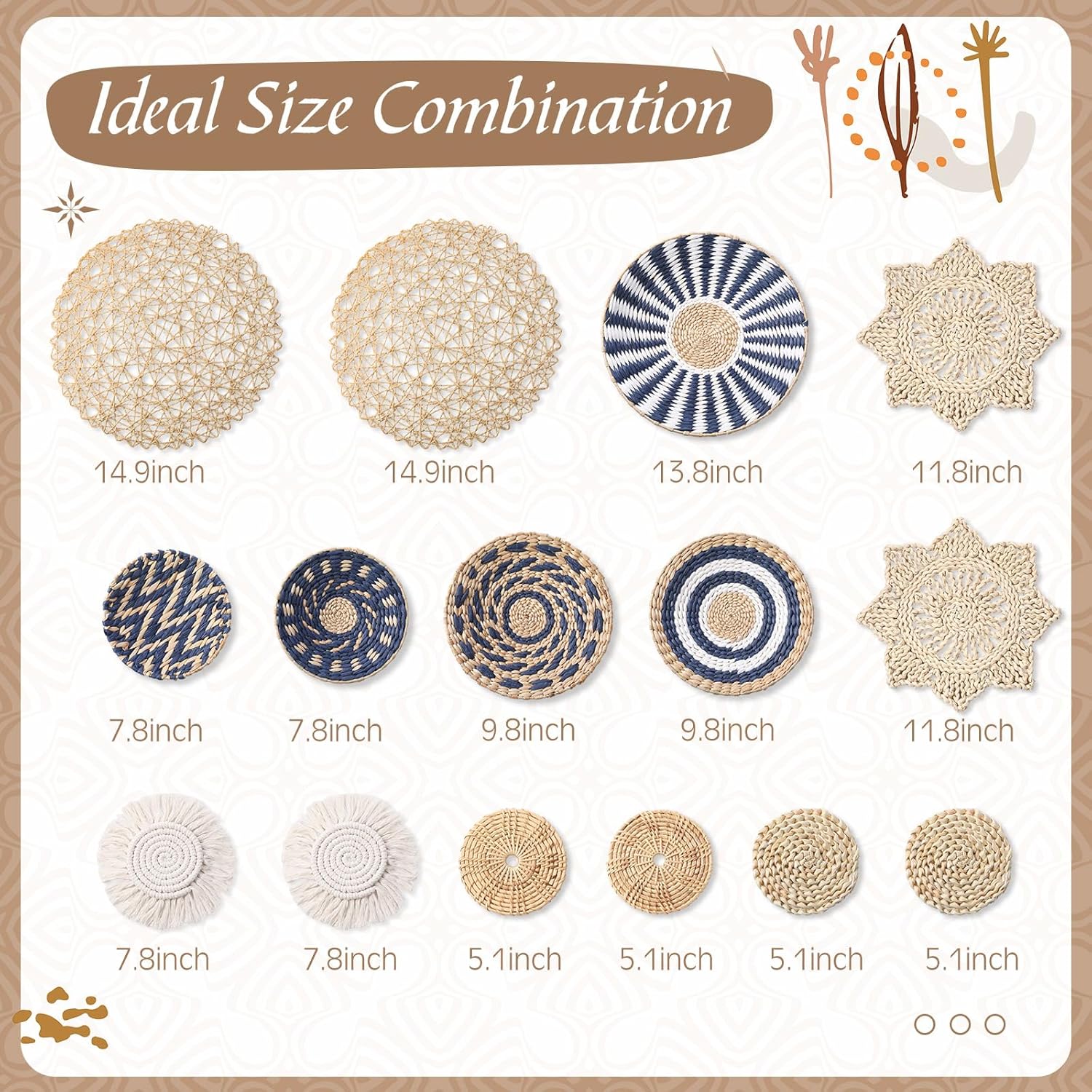 - Selection of Sizes: the hanging storage baskets meet your needs in many spaces with a versatile size offering; With diameters ranging from 5.12 inches/13 cm to a maximum size of 14.96 inches/ 38 cm, these wall basket decors provide you with the flexibility to draw attention to any wall effortlessly; Adding variation in size not only adds depth to your decor but also allows a personalized placement according to the wall's size