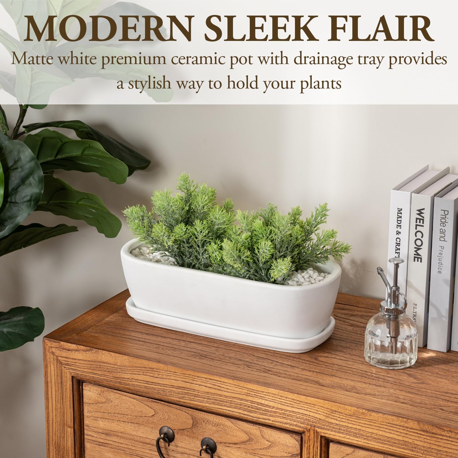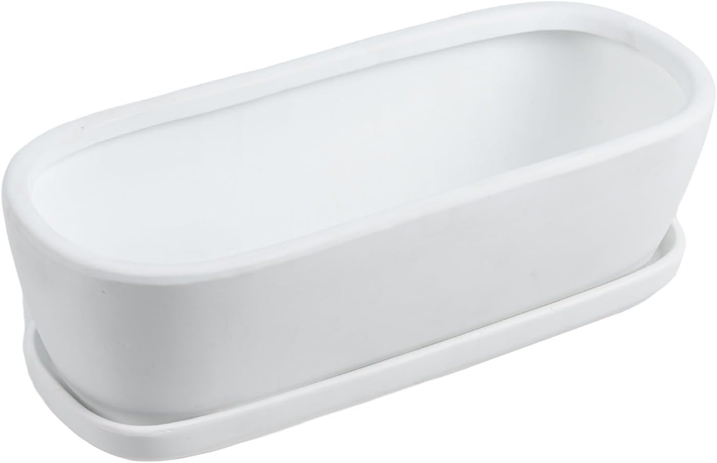 - Modern matte white ceramic rounded rectangular empty pot with removable saucer is suitable for most indoor plants in any home, office, or business **Plants NOT included**