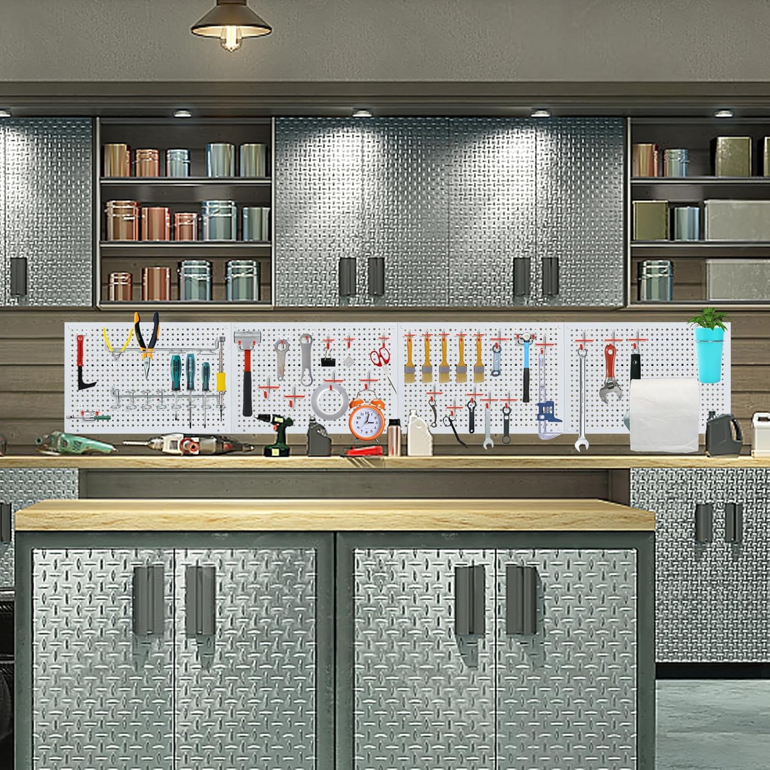 - [Flexible Installation] The 4-pack pegboards can be installed either together or separately, allowing you to place them wherever you need. This enhances storage flexibility and variety, helping to keep your space more organized