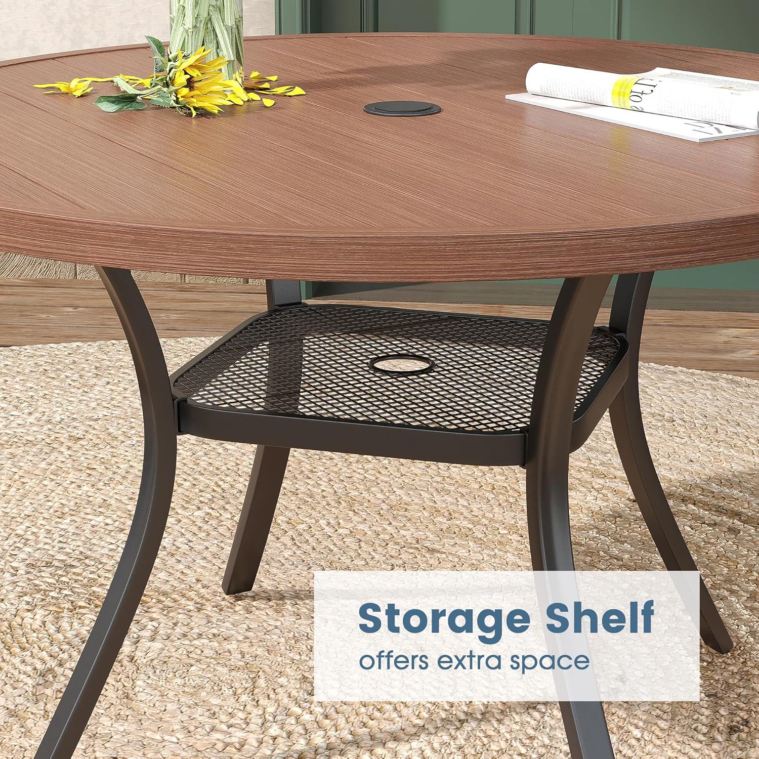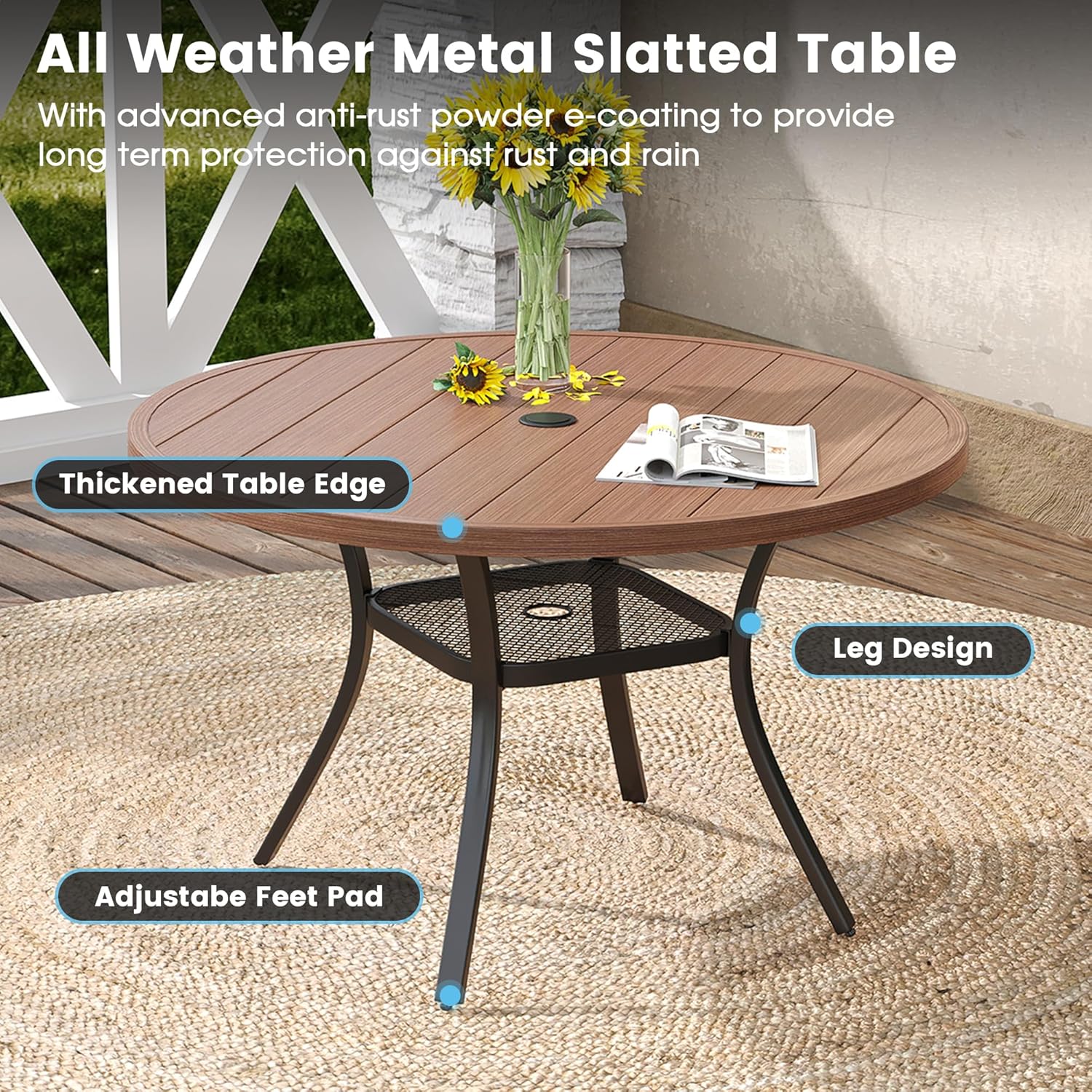DIFY Outdoor Dining Table for 4 Person, 42"x 42" All Weather Round Patio Metal Table with 1.57" Umbrella Hole for Poolside Garden and Backyard, Walnut