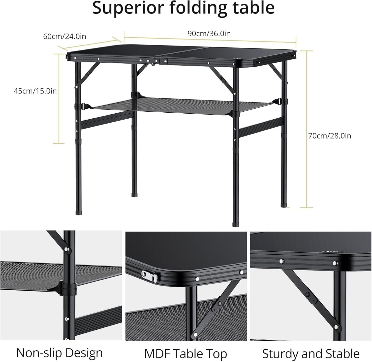 - Convenient Storage Net for Extra Space: The outdoor folding table has a surface size of 36"L x 24" W and comes with a storage net, providing plenty of utilization space