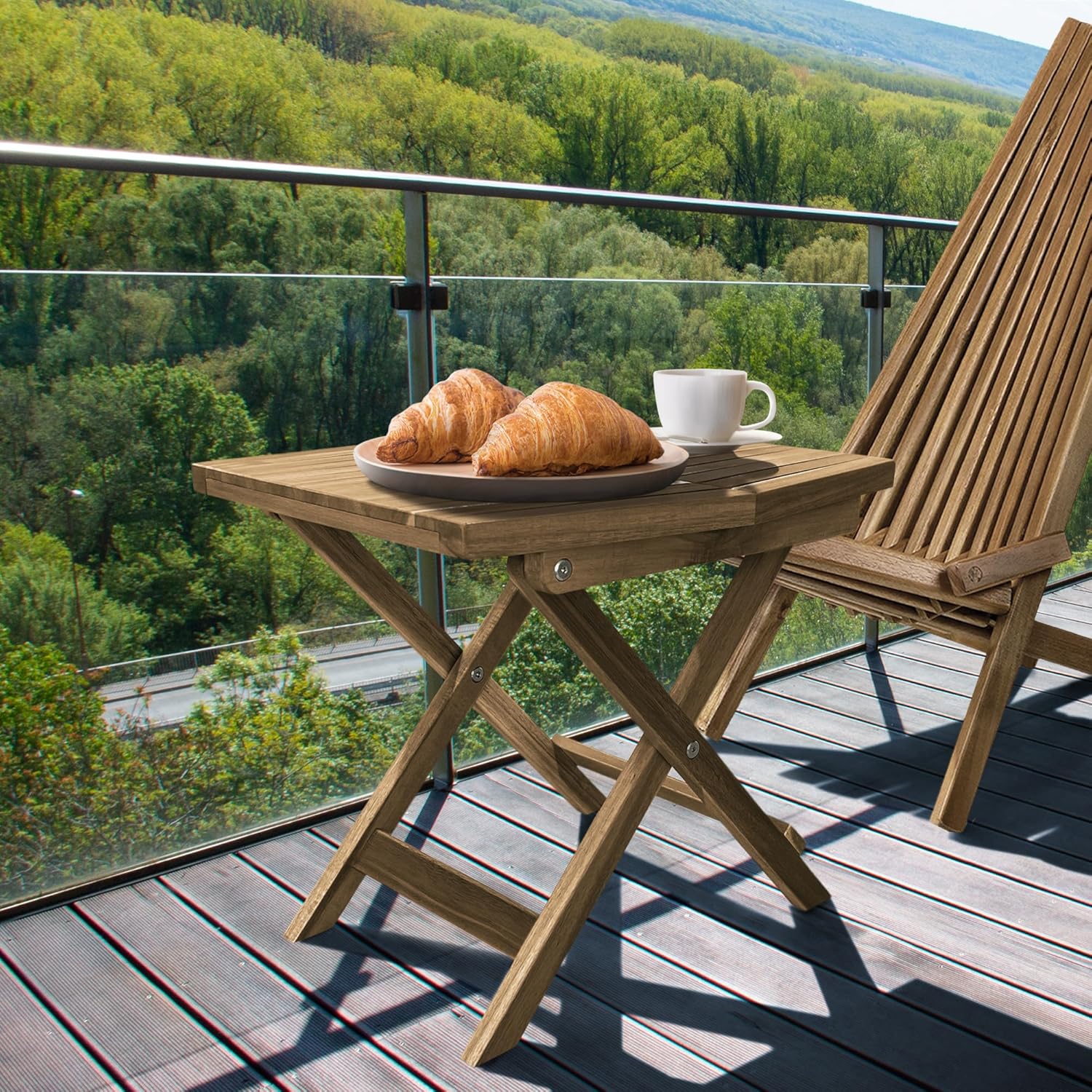Melino Wooden Folding Outdoor Side Table, FSC Certified Acacia Weatherproof Side Tables, Wood Folding Small Table for Outdoor, Patio, Porch, Pool, Backyard, Garden, Balcony and Deck - Natural
