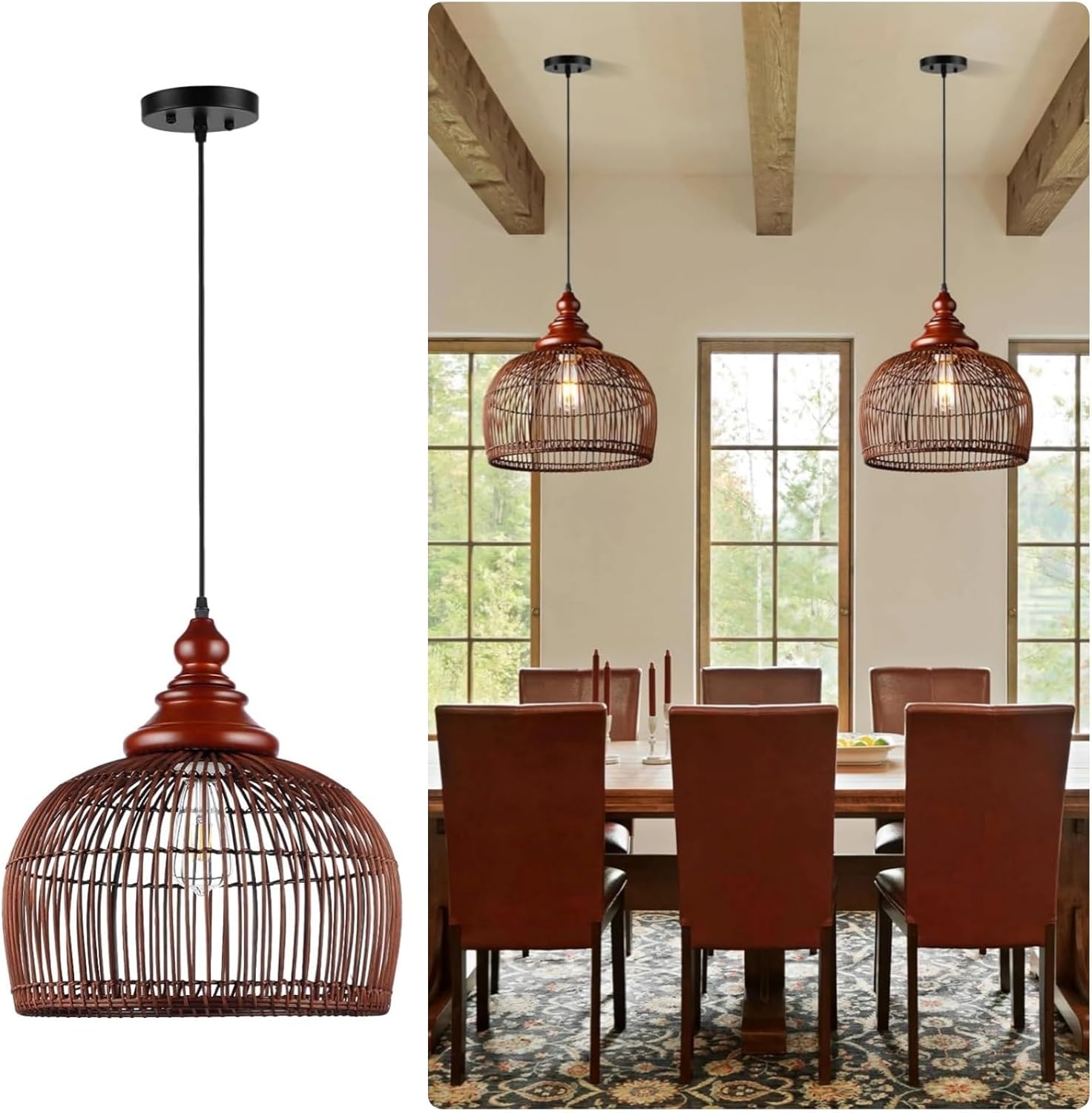 - ⭐【Easy installation】This rattan lighting apply UL Listed E26 standard sockets (Max 60W), compatible with incandescent, LED, CFL, and halogen bulbs (Bulb Not Included). The rattan light fixtures includes all installation accessories. Easy to assemble and use, makes your life much easier.