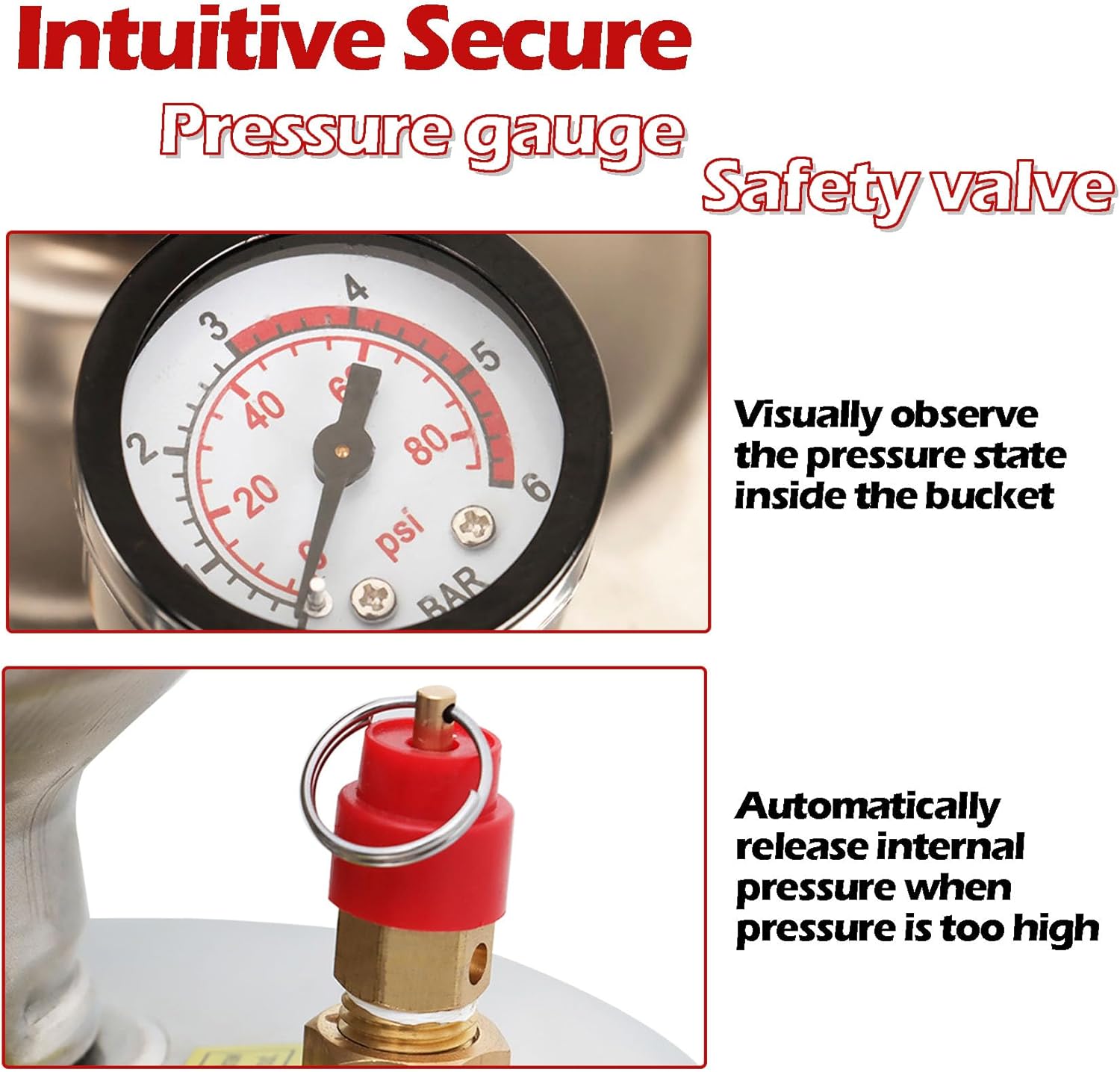 - Comprehensive design - Adjustable brass nozzles enable spraying from direct sprayed to achieve fine mist. The pressure gauge can intuitively display the pressure situation inside the tank. The safety valve can automatically release the internal pressure when the pressure is too high, so that the pressure is kept within the safe range.