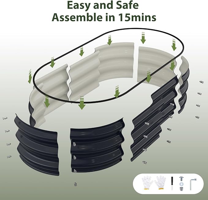 - Thickened Safety Edge: Oval designed metal raised garden beds outdoor with no sharp corners and there is a rubber edge to protect the you and your family from scratches