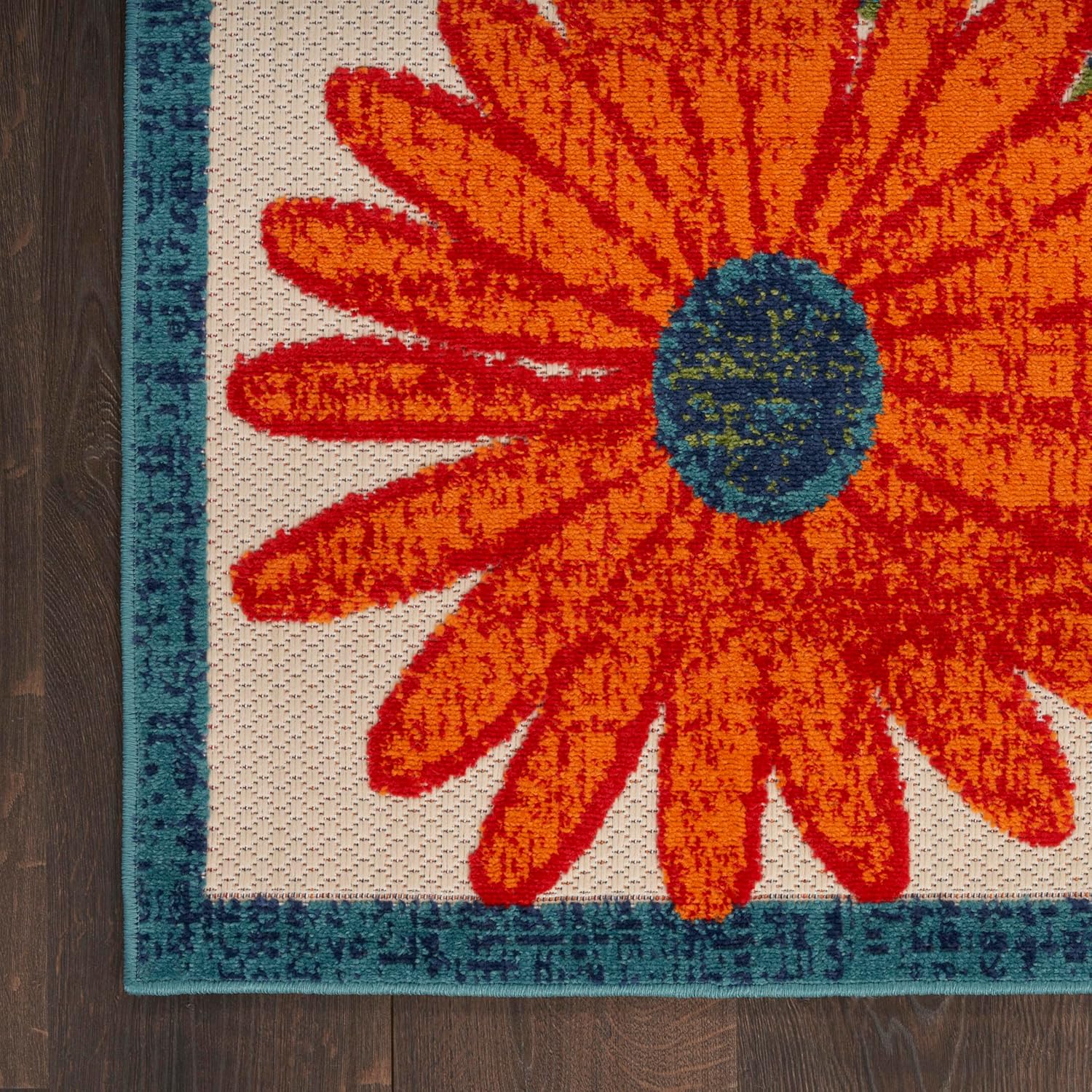 Nourison Home Aloha Indoor/Outdoor Ivory Multicolor 2' x 6' Area Rug, Easy Cleaning, Non-Shedding, Bed Room, Living Room, Dining Room, Backyard, Deck, Patio (2x6)