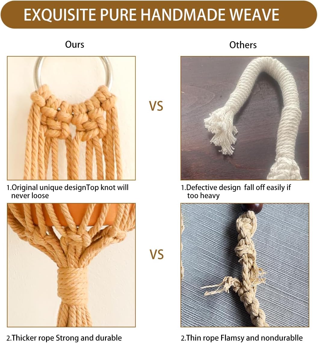 - HANDMADE WEAVING CRAFT - Hanging plant holder made from eco-friendly cotton rope and metal ring, It has a strong flexible woven design, sturdy and durable, enough to hold the weight of the pots, not easy to break, you can take them home for your plants with confidence