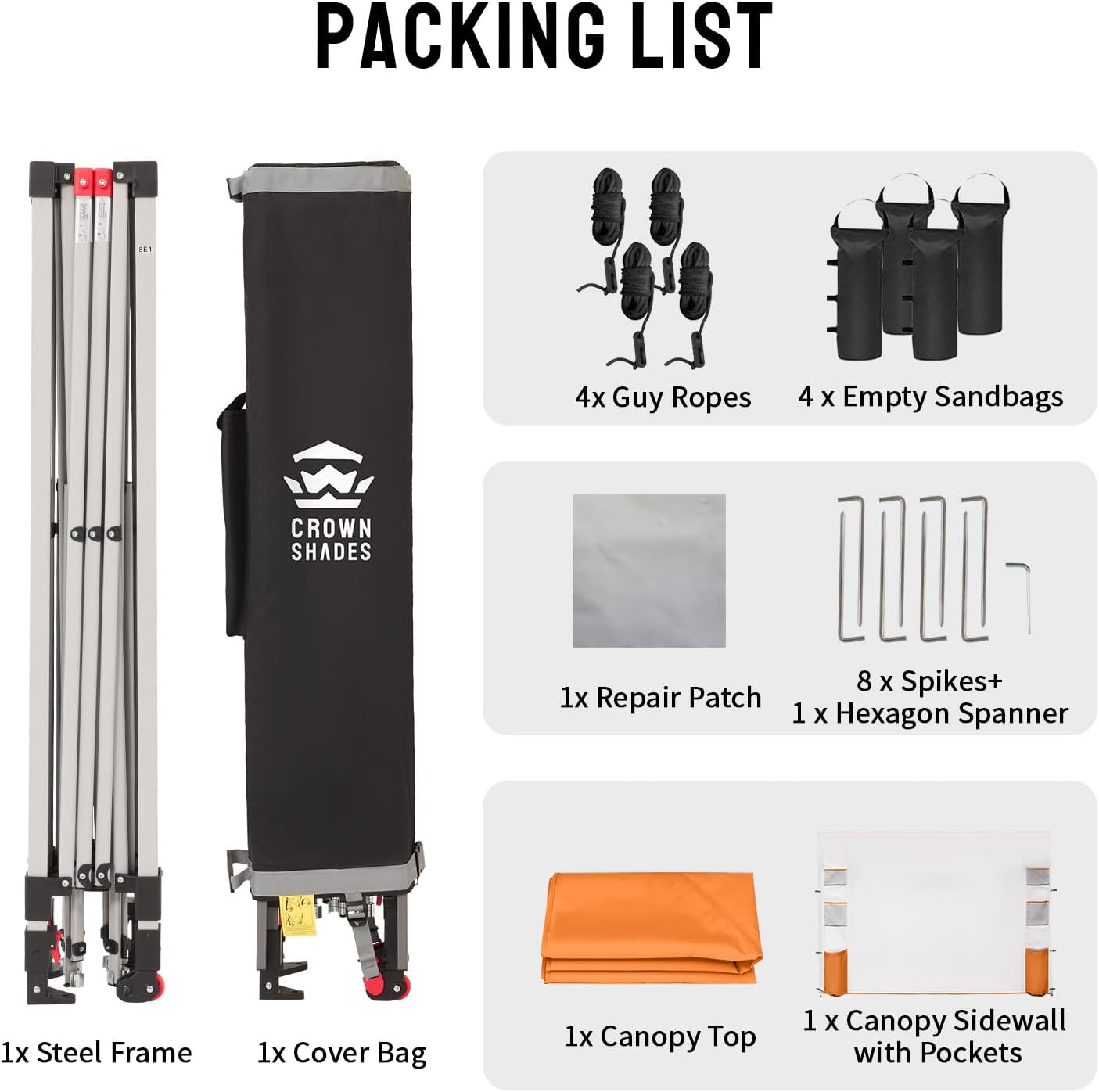 CROWN SHADES Canopy Tent, 10 x 10 Foot Portable Pop Up Outdoor Shelter with Pocket Sidewall, Push Center Lock, UV Protection, and Carry Bag, Orange