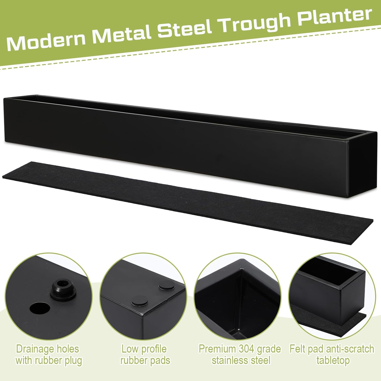 32 x 3.5 x 3.5 Inch Long Rectangular Planter Box Window Sill Plant Box Metal Water Trough Indoor Large Modern Steel with Drainage Holes Herb Garden Home(Black)