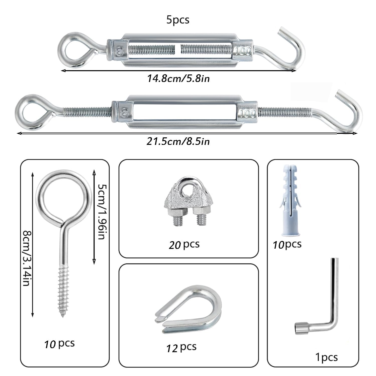 - Recommended Uses For Product : String light hanging kits, wire curtain hanging systems, garden trellis wire kits, grape wire supports, tension wires for chain link fences, gate tension wires, clothesline kits, antenna guy wire kits, anti-sag gate kits, espalier wires, grapevine wires, outdoor cable railings, sun shade sails, adjustable cable tighteners, gate cable supports, fence wire tensioners String light hanging kits, wire curtain hanging systems, garden trellis wire kits, grape wire supports, tension wires for chain link fences, gate tension wires, clothesline kits, antenna guy wire kits, anti-sag gate k… See more