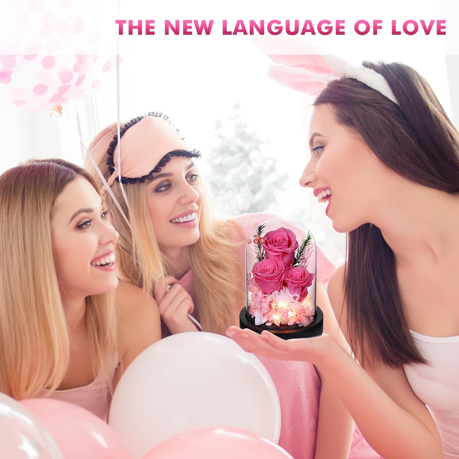 Mothers Day Flowers Gifts for Mom,Pink Forever Preserved Roses in Glass Dome, Anniversary Valentines Day Birthday Gifts for Wife Grandma Women Daughter Mother Her