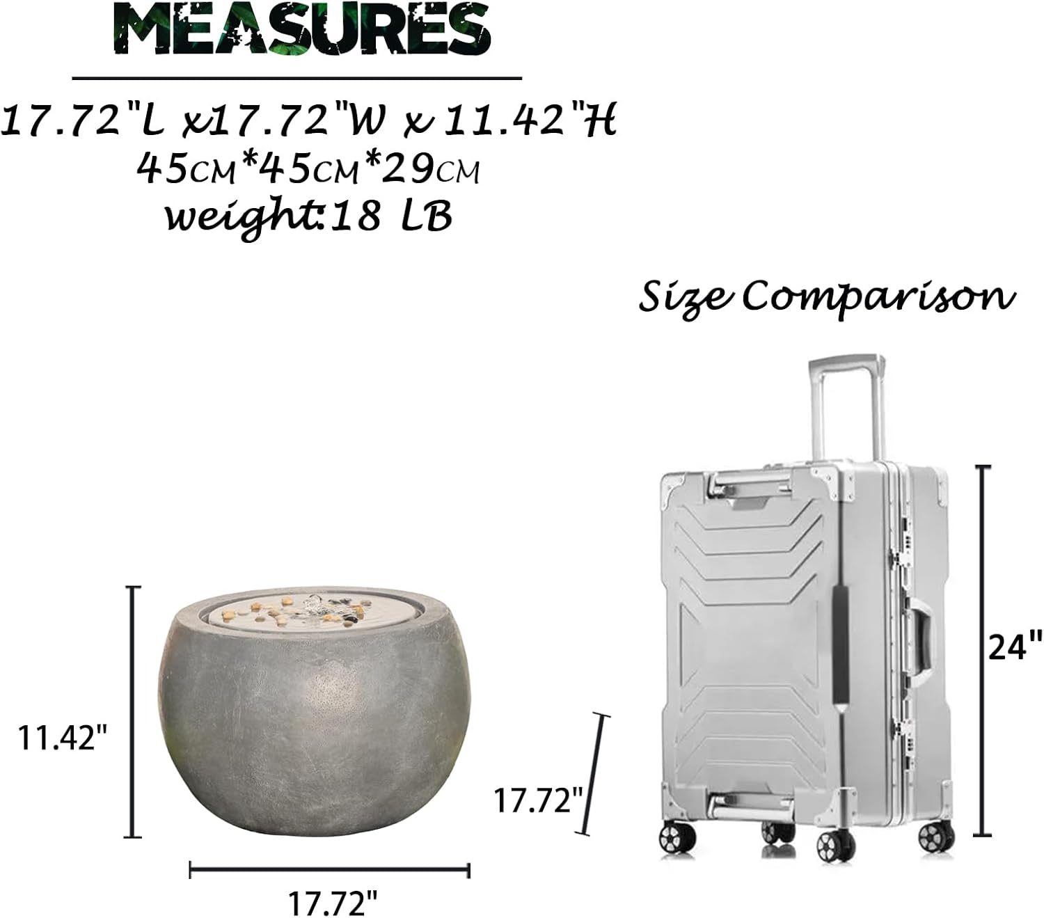 - SIZE AND ACCESSORIES - The size of the small water fountain is 18 "L x 18"W x 11.5"H.To Fit Any Outdoor Area.9.8 ft Power Cord (Extended power cord solves your space problems).Accessories Include: Garden Fountain*1, Transformer*1, Pebbles*1,Pump*1,Detailed Instructions*1.