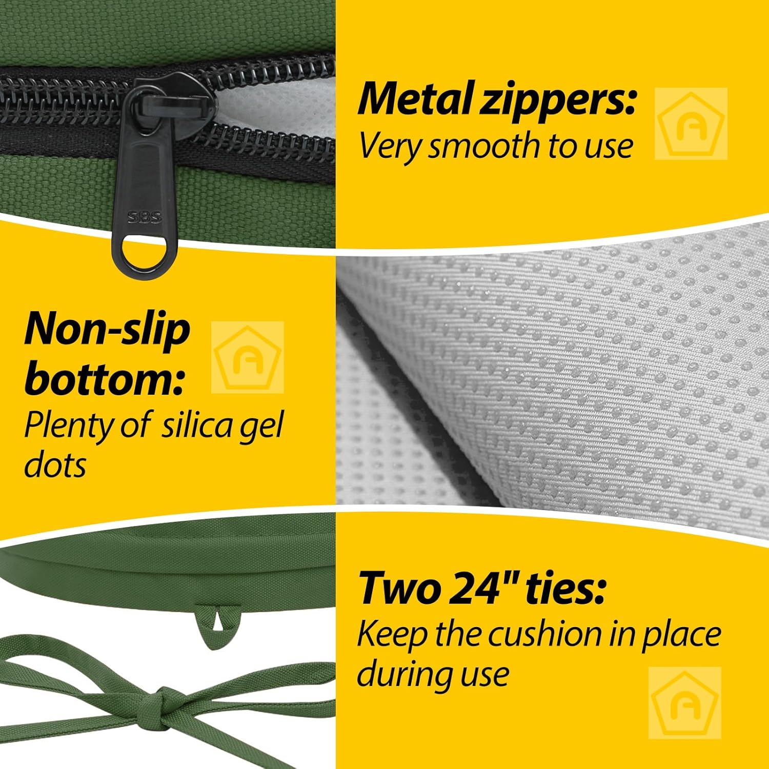 AAAAAcessories Outdoor Seat Cushions for Chairs, Waterproof, Fade-Resistant Patio Furniture Replacement Cushions, 15" x 15" x 2", Set of 2, Dark Moss