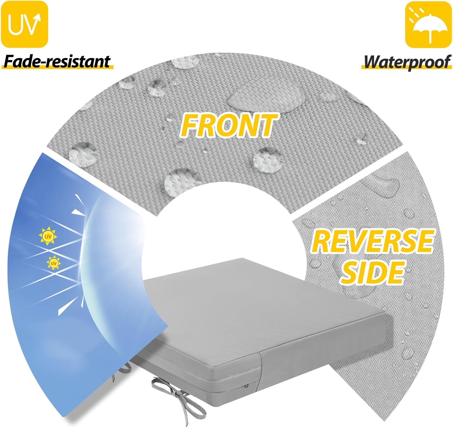 - Waterproof & Removable Cover: Durable, breathable polyester with a waterproof coating, UV protection, and fade resistance for lasting outdoor use. The zippered cover allows easy cleaning and replacement, with hidden zippers for a seamless look