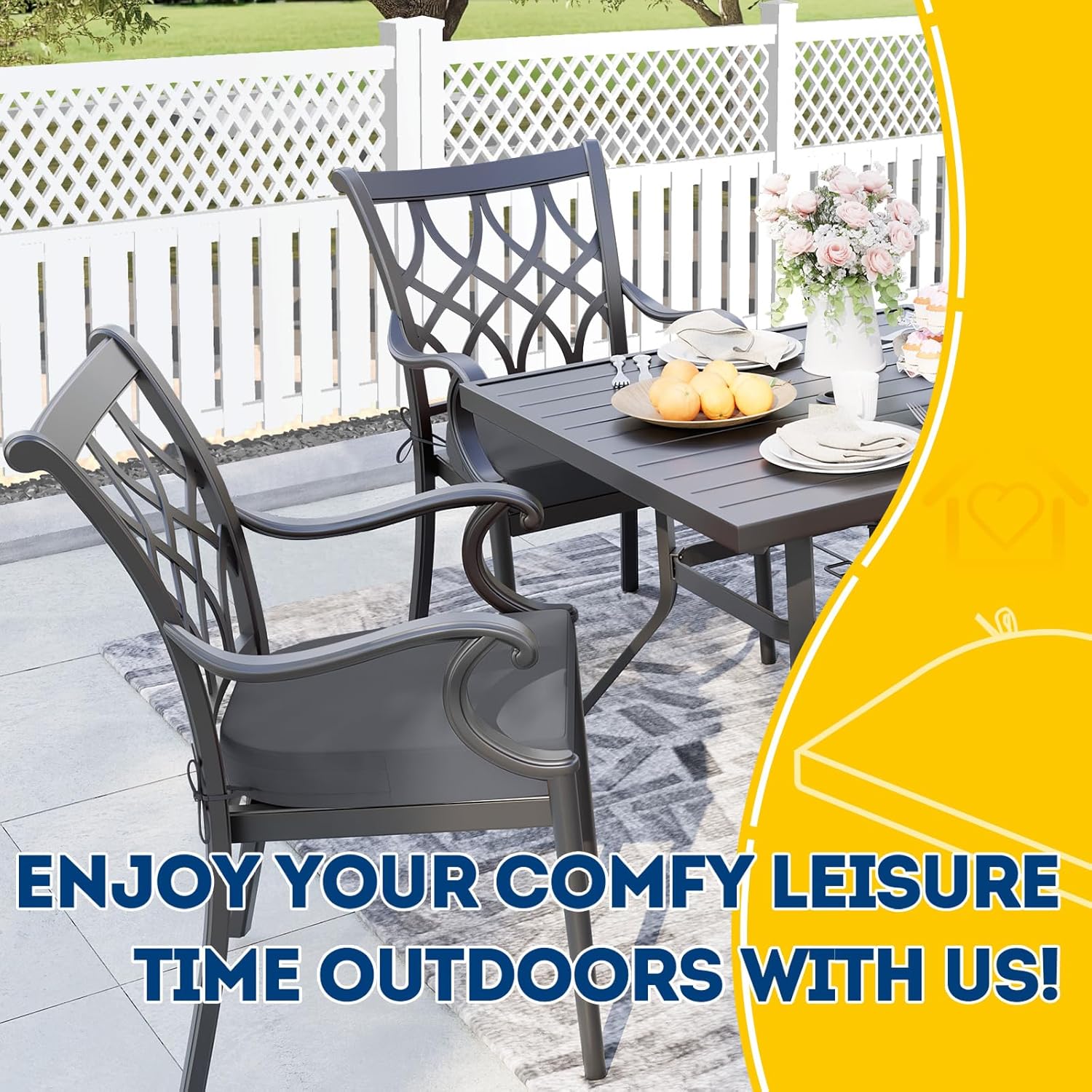 - Wide Use & Tips: These outdoor dining chair cushions fit pools, patios, balconies, decks, backyards, and gazebos. Foam inserts and covers are packed separately in bags and placed in one box—check all parts. Easy assembly required