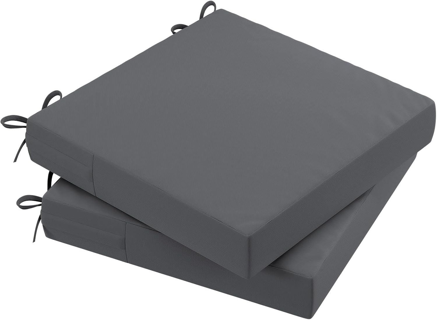 AAAAAcessories Outdoor Seat Cushions for Chairs, Waterproof, Fade-Resistant Patio Furniture Replacement Cushions, 19" x 19" x 3", Set of 2, Dark Gray