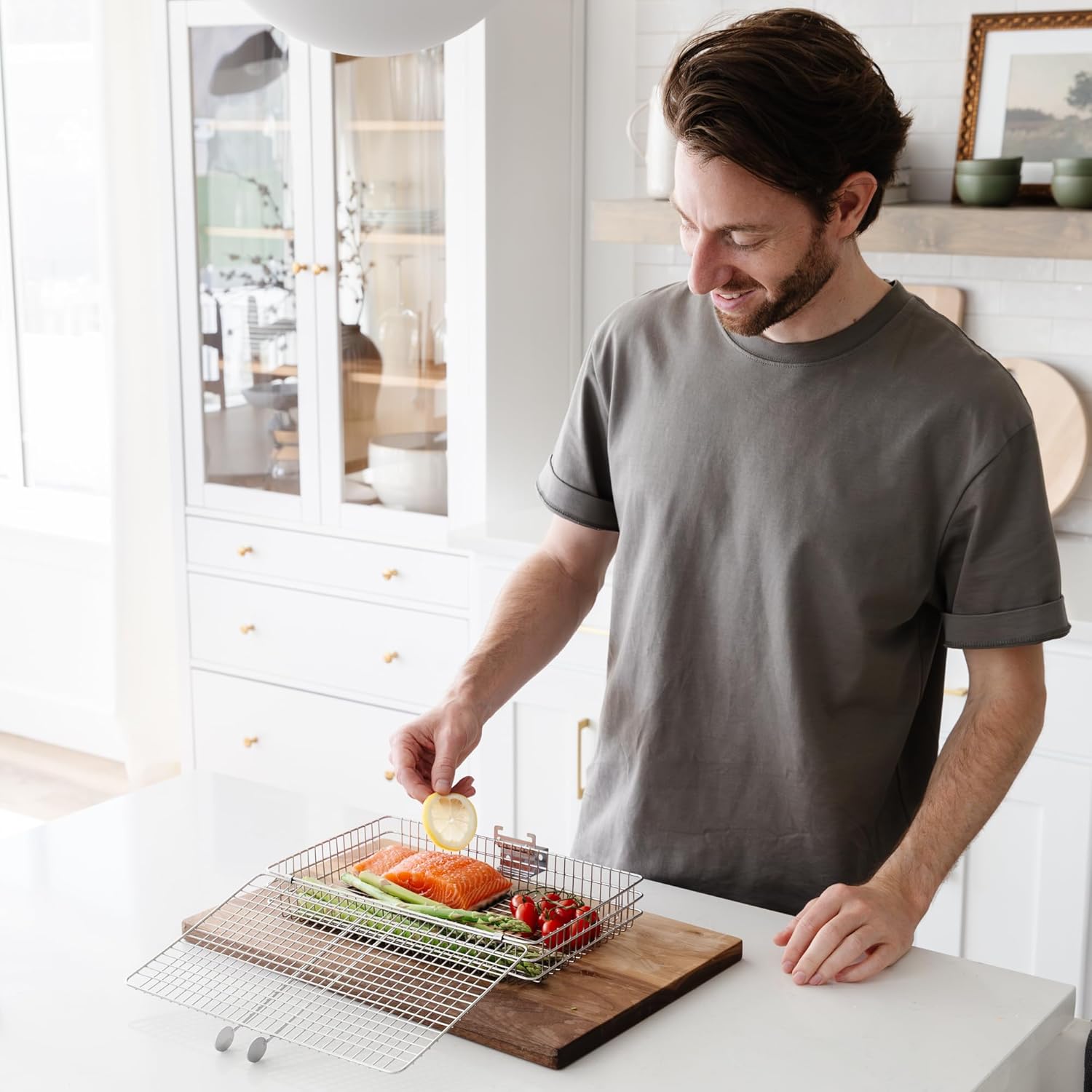 - 【ENGINEERED FOR DURABILITY & PERFORMANCE】Crafted from premium 304 stainless steel, our grill nets are built to last, making them the strongest and most reliable grilling companions on the market. Don't settle for flimsy grilling baskets that bend & wear out after a few uses. The 0.8mm thick cylinder mesh ensures that your delicious food stays intact while allowing those mouthwatering grill marks to sear through to perfection.