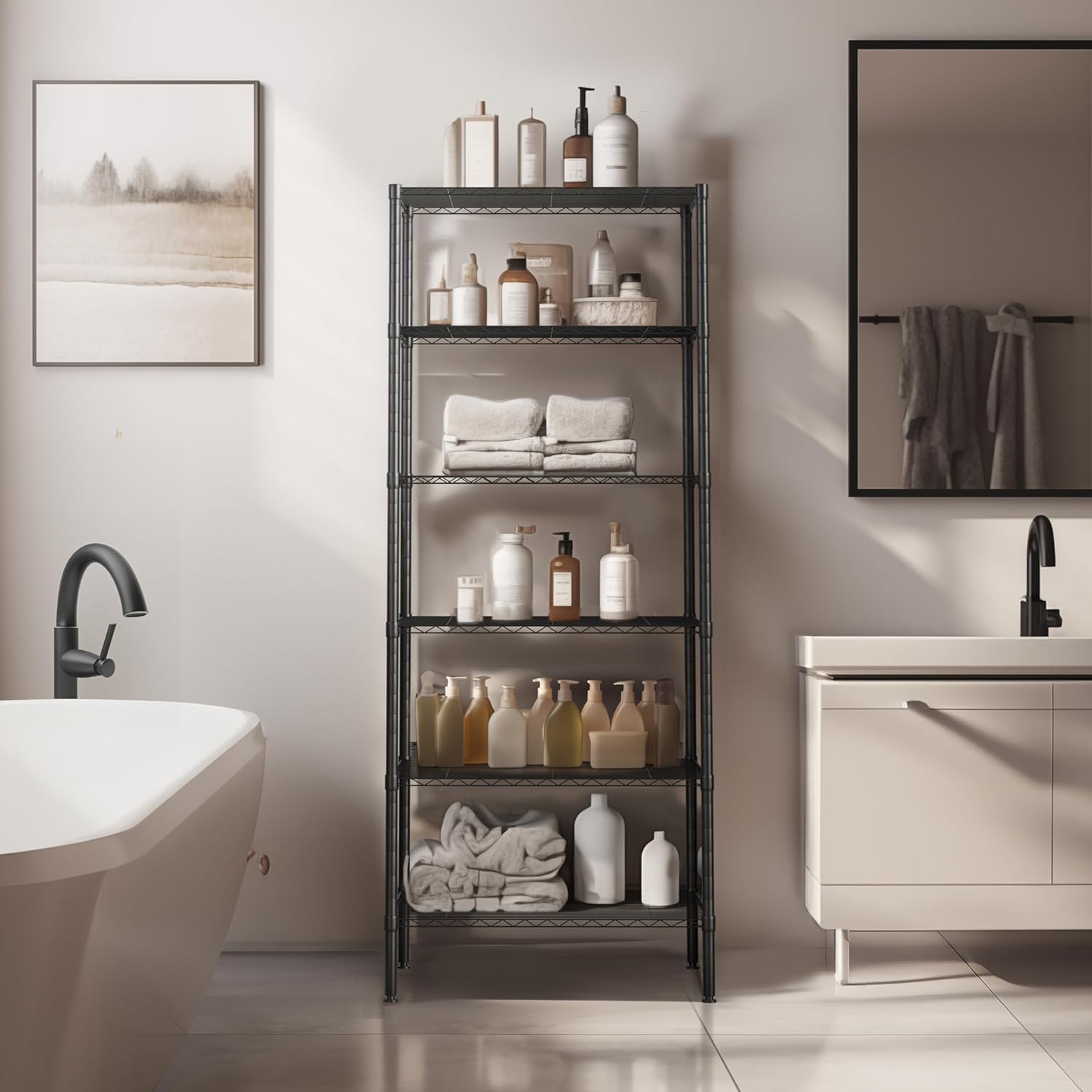 Finnhomy 6-Tier Wire Shelving Unit - Adjustable Steel Wire Rack with 6 Shelves, PE Mat and Stable Leveling Feet, NSF Certified, Black
