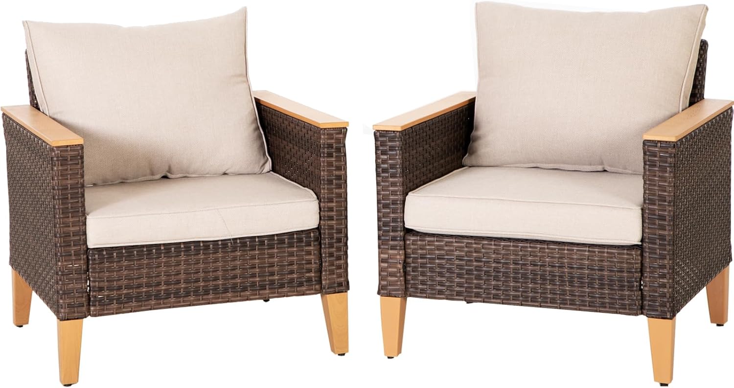 Sophia & William Outdoor Patio Sectional Sofa Set 2 Seats High Back Single Wicker Patio Furniture Chairs All-Weather Patio Conversation Set Outdoor Couch with 4" Thick Cushions, Beige