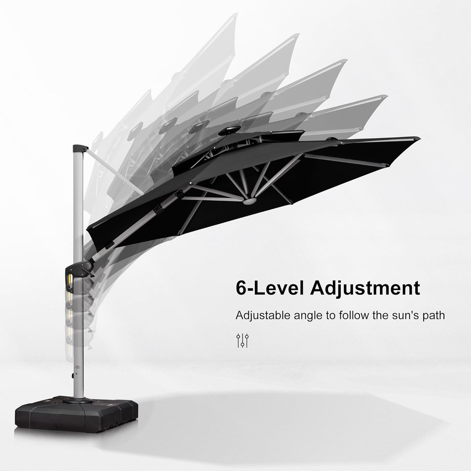 PURPLE LEAF 11ft Patio Umbrella With Base Solar powered LED Cantilever Umbrella with LED lights Windproof Outdoor Offset Umbrella for Garden Deck Pool Patio, Black