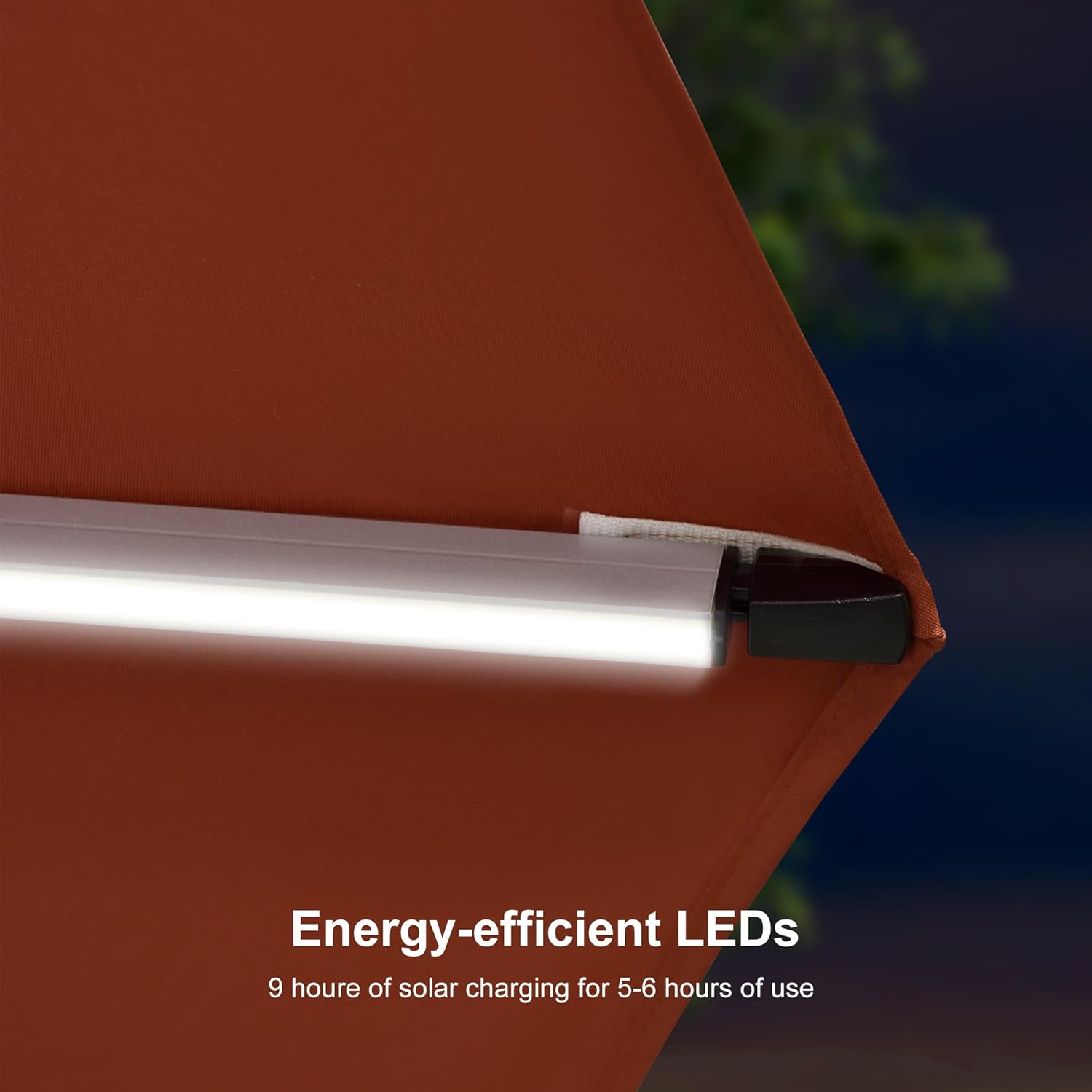 - All-aluminum umbrella bones and 8 heavy-duty ribs, anti-oxidation spray painted, with LED light tubes, extension of time of use