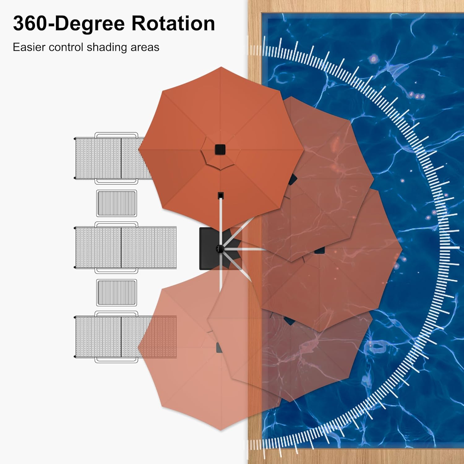 PURPLE LEAF 11ft Patio Umbrella With Base Solar powered LED Cantilever Umbrella with LED lights Windproof Outdoor Offset Umbrella for Garden Deck Pool Patio, Brick Red