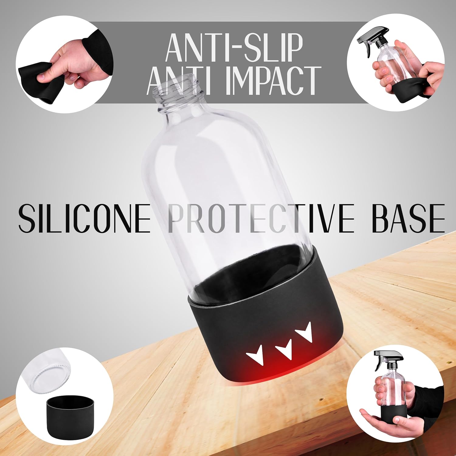 16oz Empty Glass Spray Bottle with Silicone Sleeve Protection - Refillable Containers for Cleaning Solutions, Essential Oils, Misting Plants - Including 2 Sprayers (Clear, 1 PACK)