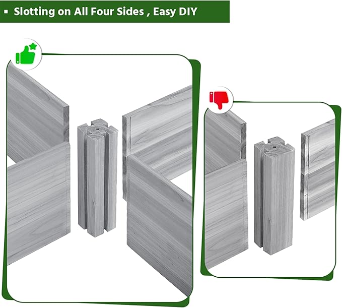- UPGRADED SLOTTING FOR FLEXIBLE DIY -- The corner posts have been upgraded that the number of slotting on the posts is increased from 2 on the opposite 2 faces into 4 on 4 faces. Such a change enables users to combine two or more such planting beds more flexibly and fixedly