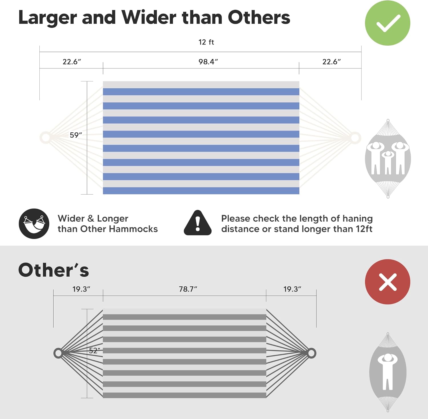 SUNCREAT Large Hammocks for Outside, Long Replacement Hammock Two Person for Stand, Blue White Stripes