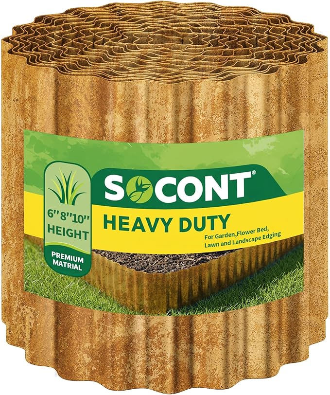 Corrugated Metal Garden Edging, 10"×20Ft Durable Landscape Border for Garden, Lawn, Flower Beds and Paver Edging (Rusty)