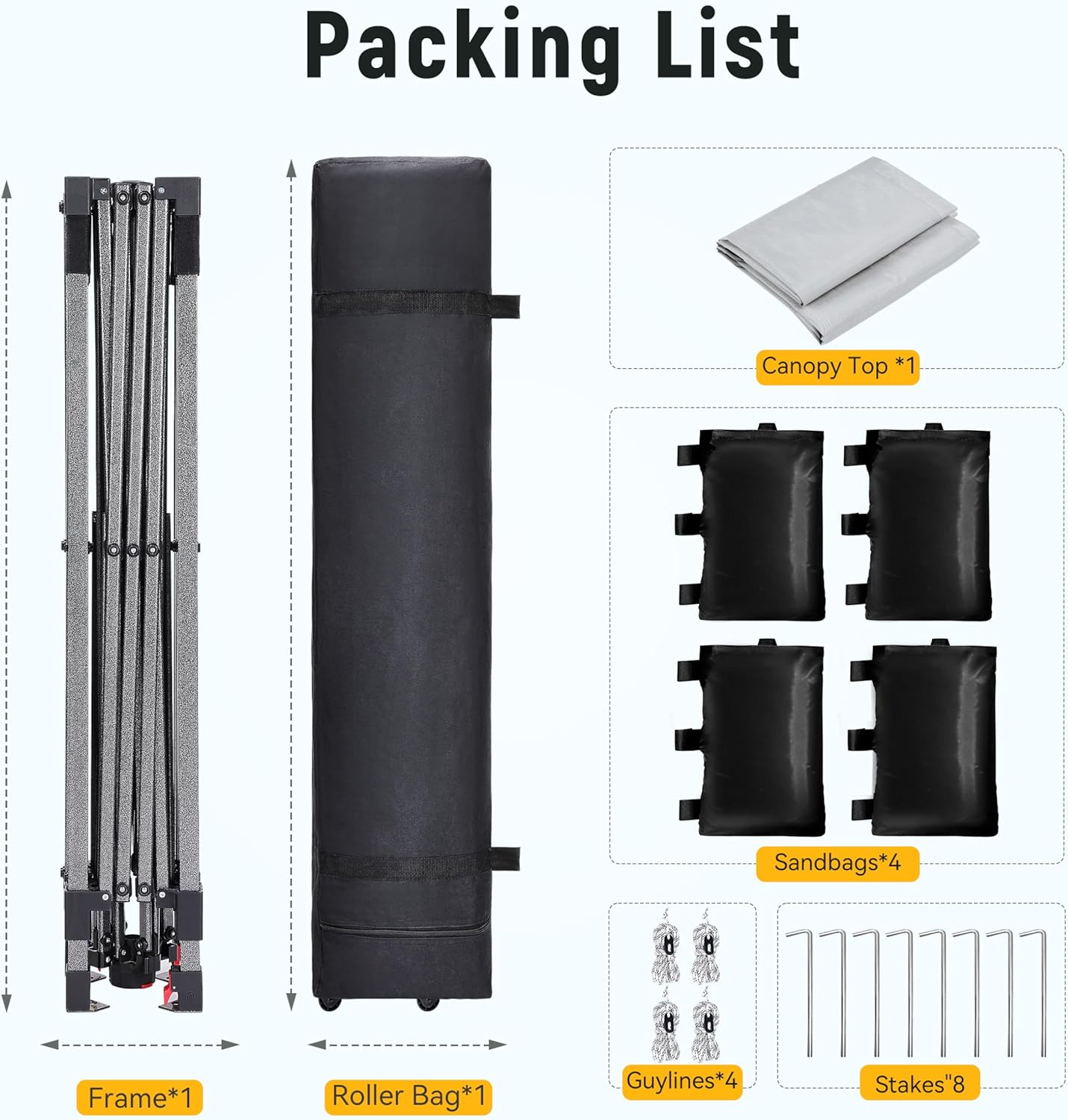Canopy Tent 10x10, 1-Person Setup Pop Up Canopy Tent with Roller Bag, 3 Adjustable Height, 4 Sandbags, 8 Stakes, 4 Guylines, Waterproof and UPF50+ Sun Protection Outdoor Canopy for Party,Beach