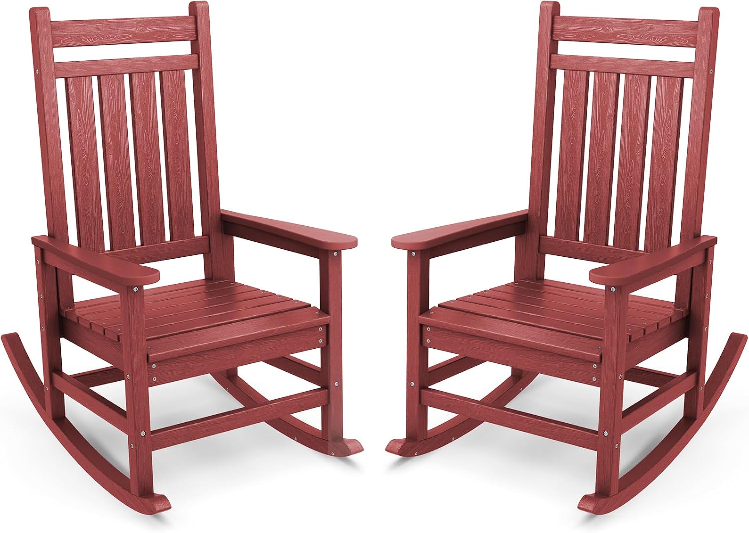 SERWALL Outdoor Rocking Chair Set of 2, HDPE Rocking Chairs for Adult, All Weather Porch Rockers for Lawn Garden, Crimson Red