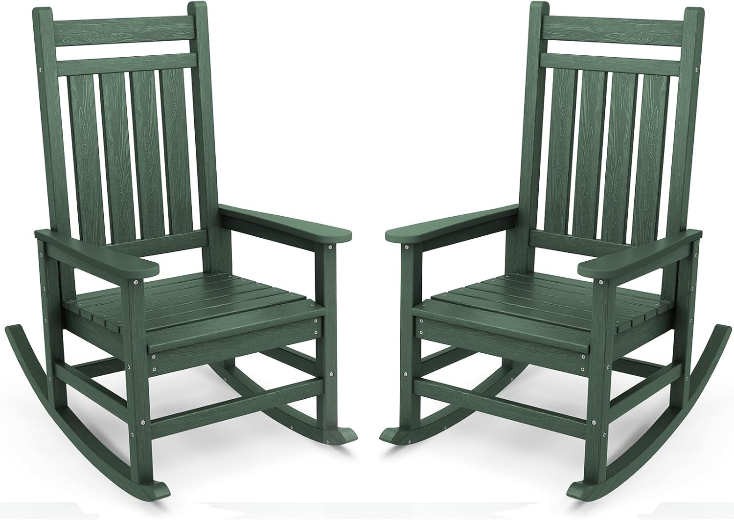 SERWALL Outdoor Rocking Chair Set of 2, HDPE Rocking Chairs for Adult, All Weather Porch Rockers for Lawn Garden, Green