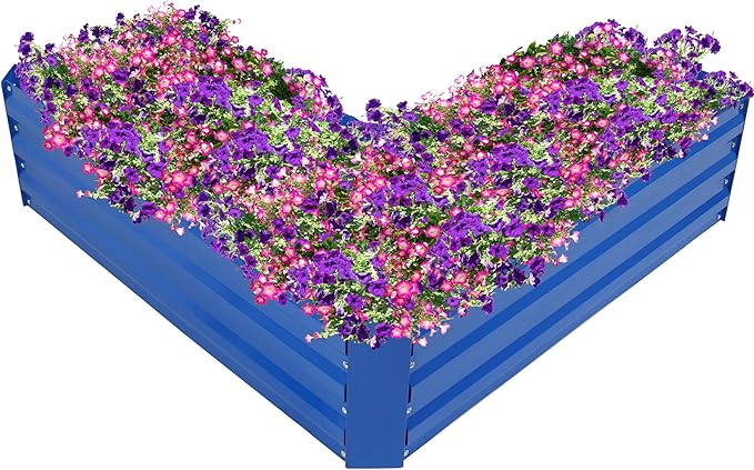 - UNIQUE CORNER SHAPE: Add this galvanized raised planter bed to the patio or backyard. The unique L-shaped design makes it a great fit for corners and will add style to any outdoor space.