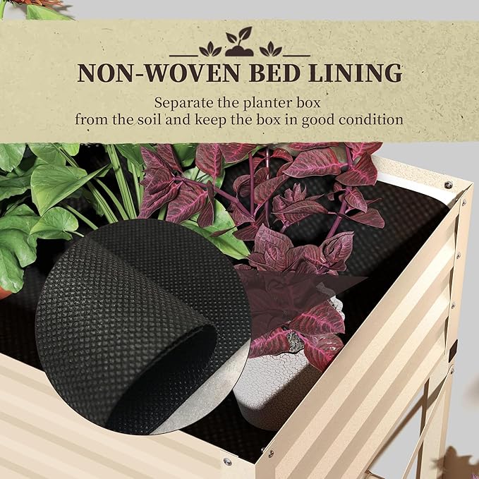 Outsunny Raised Garden Bed with Galvanized Steel Frame, Storage Shelf and Bed Liner, Elevated Planter Box with Legs for Vegetables, Flowers, Herbs, Cream