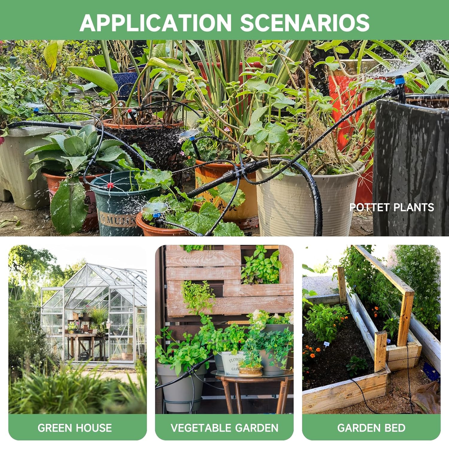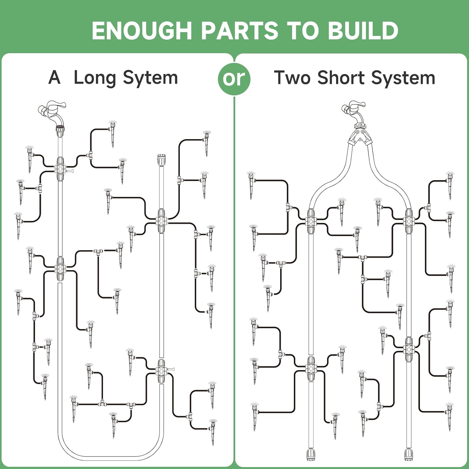 - Upgraded Tubing Design - The main tubing has been upgraded to support higher water pressure. The long 35FT main tubing can be cut into 2 main tubes and we offer 2 faucet connectors in the package to make it easy to build up 2 sets of drip irrigation systems if needed.