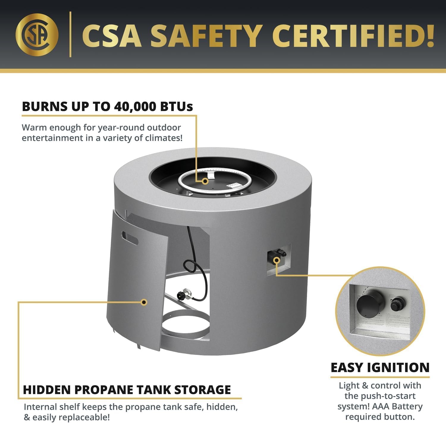 - 【Minimalist and Stylish Design】Enhance your outdoor space with this sleek, round propane fire pit table. Its minimalist design adds a modern touch to patios, gardens, and backyards, creating a cozy and inviting atmosphere for family and guests. Perfect for outdoor conversation areas, this smokeless fire pit provides a clean and safe flame for everyone to enjoy.