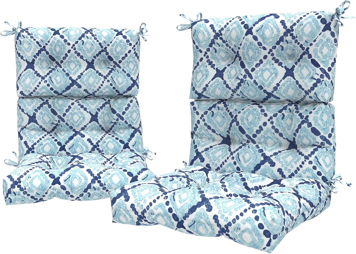 LVTXIII Outdoor Tufted High Back Cushions Set of 2 Patio Seasonal Replacement Rocking Chair Cushion with Ties, Solid Seat and Back Chair Cushion, (44” L x 22W”, Boho Geometry Blue)