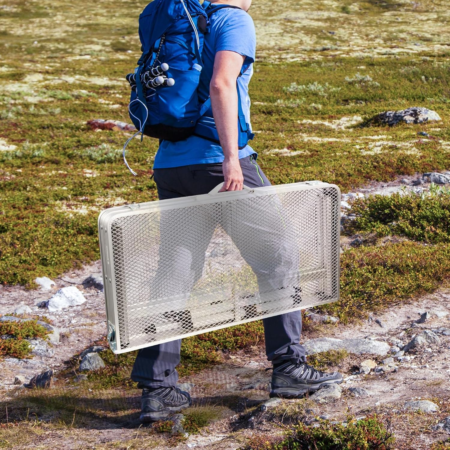 - [Lightweight and Portable] Folded, the package measures 27.2×13.6×2.56 inches, and the weight only 7.2 lbs,easily fitting into your car or RV. It can be used as a camping table, bbq table, patio table, picnic table, side table, outdoor activities, campfire, card table, etc